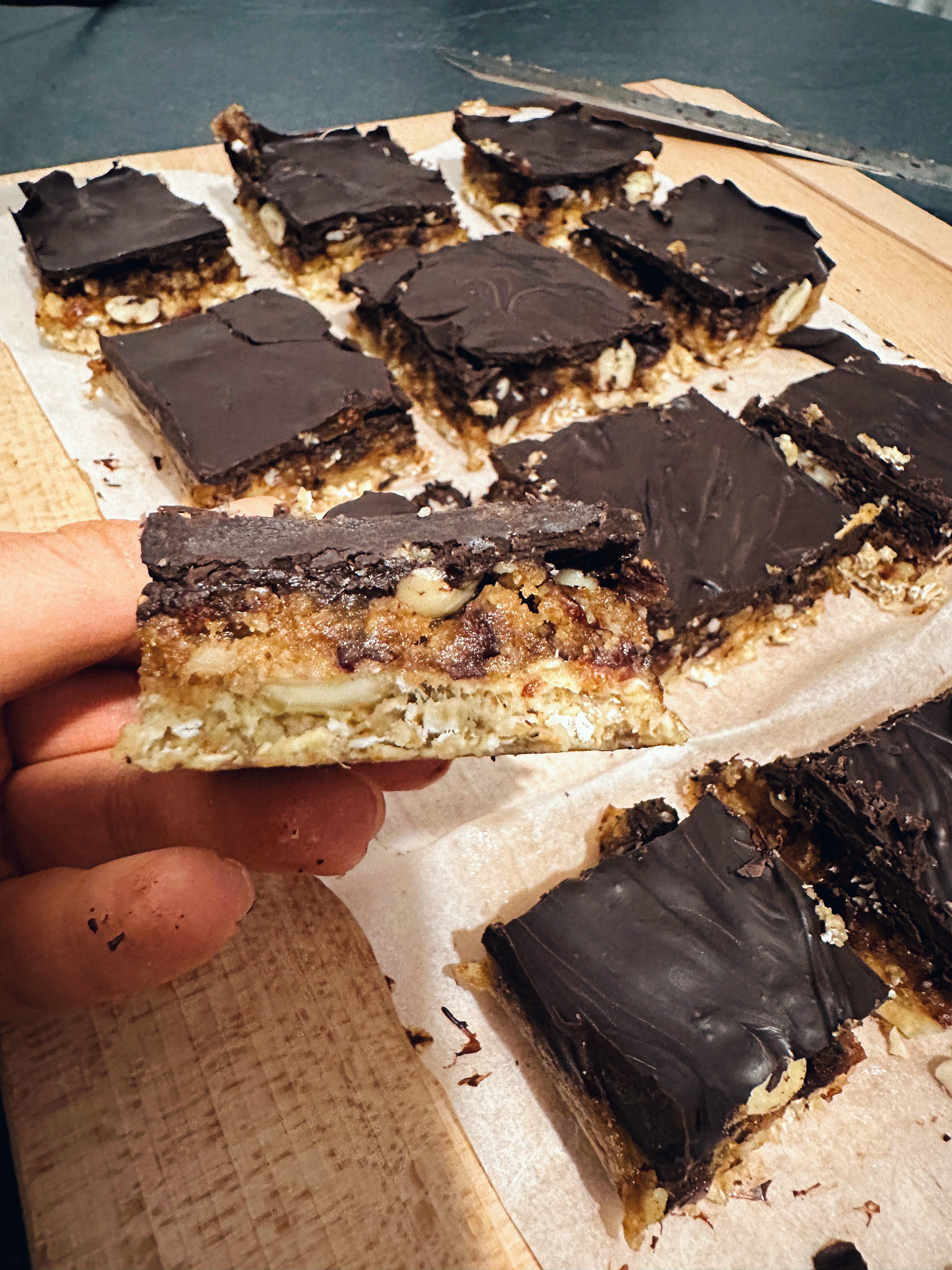 Ingrediente: făină de ovăz, caju, banane, vanilie, nucă, curmale, unt de arahide, arahide, ciocolată neagră vegană fără zahăr, ulei de cocos, sare de himalaya.